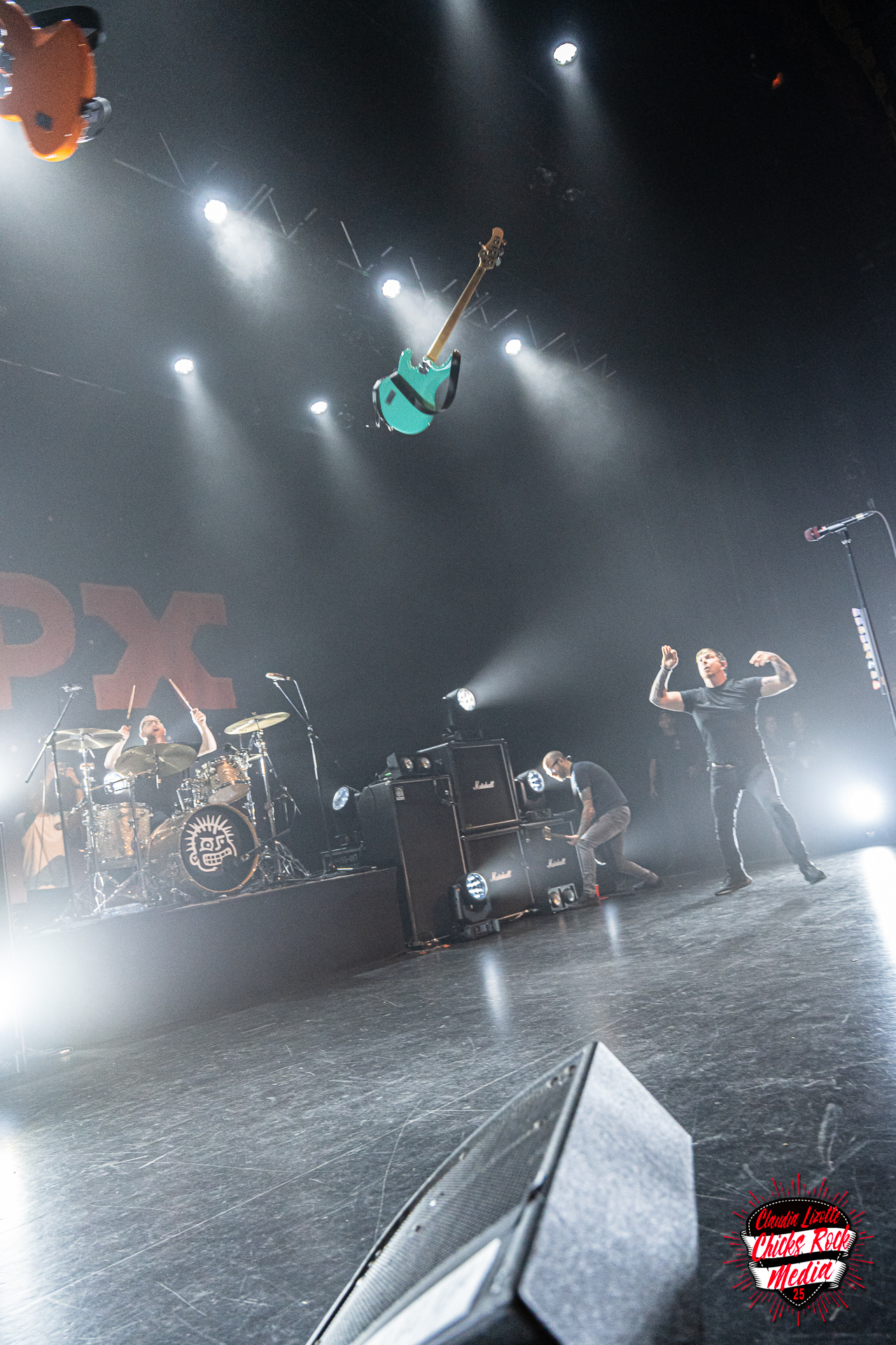 MXPX entre ensuite en scène ! L’éclairage devient beaucoup plus clair et dynamique, et on sent que le groupe est prêt à lancer une bombe d’énergie sur nos têtes. Bien que je connaisse déjà bien MXPX et leurs chansons, c’était aussi une première expérience en spectacle pour moi. C’était un spectacle à ne pas manquer ! Ils commencent leur performance avec « Not Today », ce qui fait entrer le public instantanément en mode party !