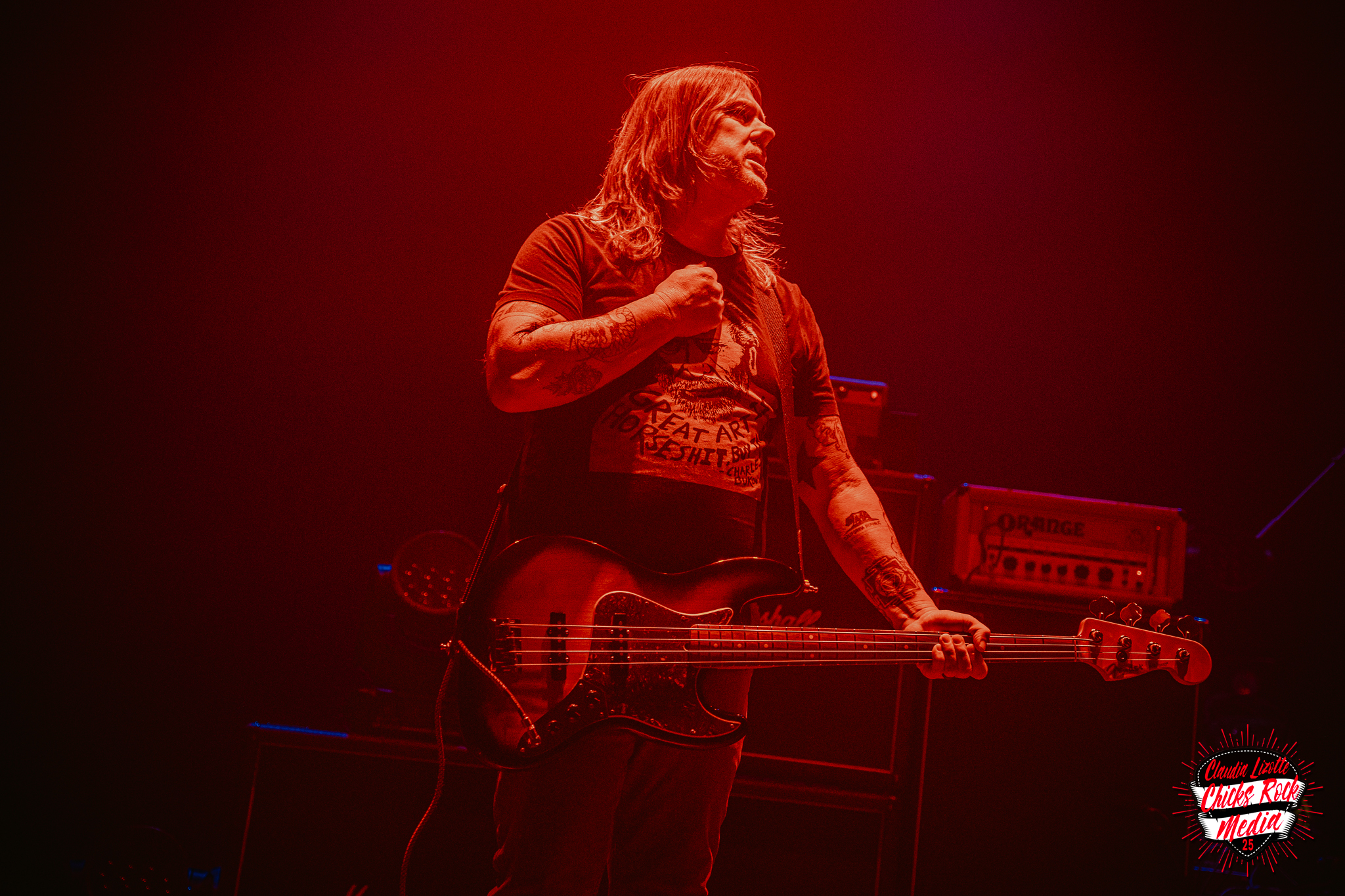 THE ATARIS then take the stage. The crowd is still quiet, but after the first song, you can feel the energy gradually building up. This is a first for me: it’s the first time I see them live, and from the very first song, I’m overwhelmed with nostalgia. We’re instantly transported back to the 90s and early 2000s. The singer and guitarist, Kristopher Lee Roe, tells us that punk rock saved him and freed him from racism, sexism, etc., and then dedicates the third song of the evenin, “The Hero Dies in This One”, to his wife, children, mother, father, and us, the audience.