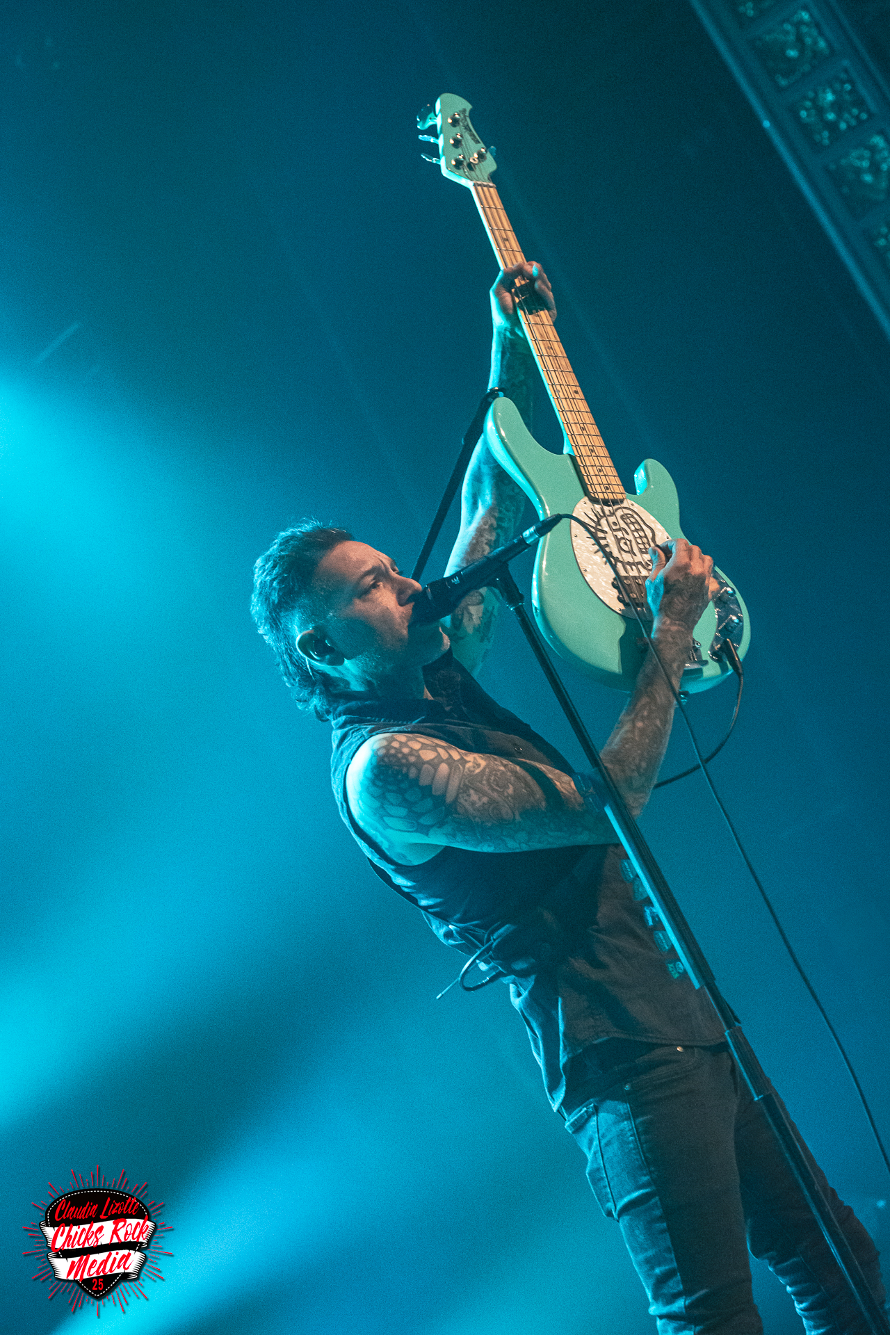 During the famous toss between Mike Herrera and his technician, however, the two instruments collided mid-air and fell heavily back onto the stage. Mike immediately picked up his bass and kept on playing as if nothing had happened. The tech guy, on the other hand, seems to be feeling somewhat down after the incident. (FYI: the next day in Montreal, it was decided to throw only one bass at a time!) The incident didn’t stop the show from going on and the band from giving it their all. Just before “Worries”, Mike takes a moment to remind everyone that life can be difficult, but that for one night, we should forget our worries – work, home, relationships, and tell ourselves that everything will be okay.