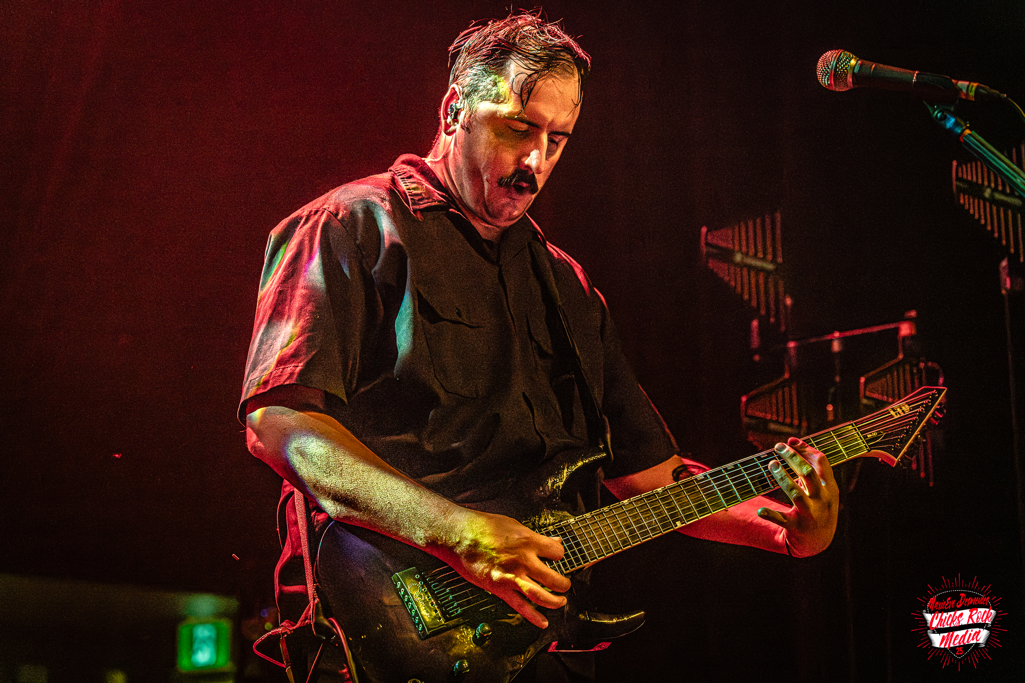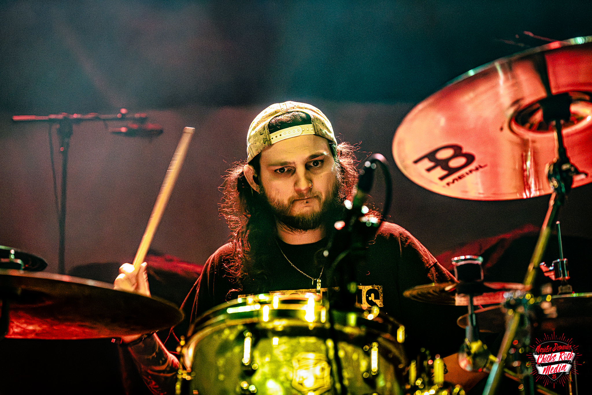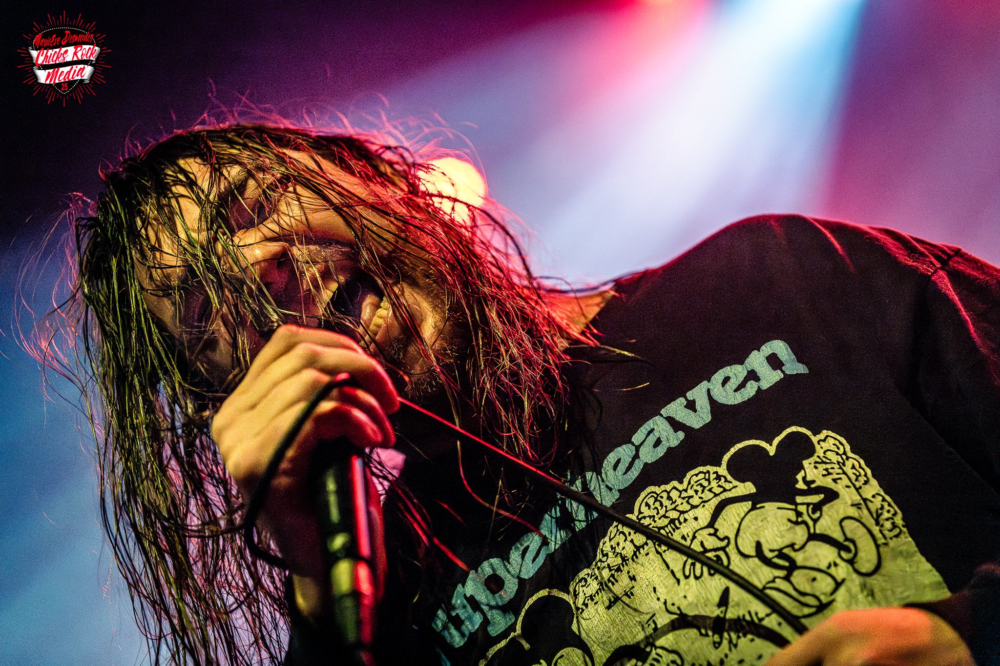 Tracks like Parasite And Plague let the musicians around Murphy shine. Tyler Williams and Jesse Doreen were on guitar and bass duty, while also taking care of backing vocals. Their lead riffs were sharp and pointy, clean edges cutting through the wall of sound. Kyle Brownlee on drums was an absolute monster. What a titan. The man posts drum cam videos online; I love when I have the opportunity to study another drummer’s style, it makes me way more hype to watch them live. Brownlee did not disappoint, delivering on every front, from technicality to endurance and beyond into clever fills.