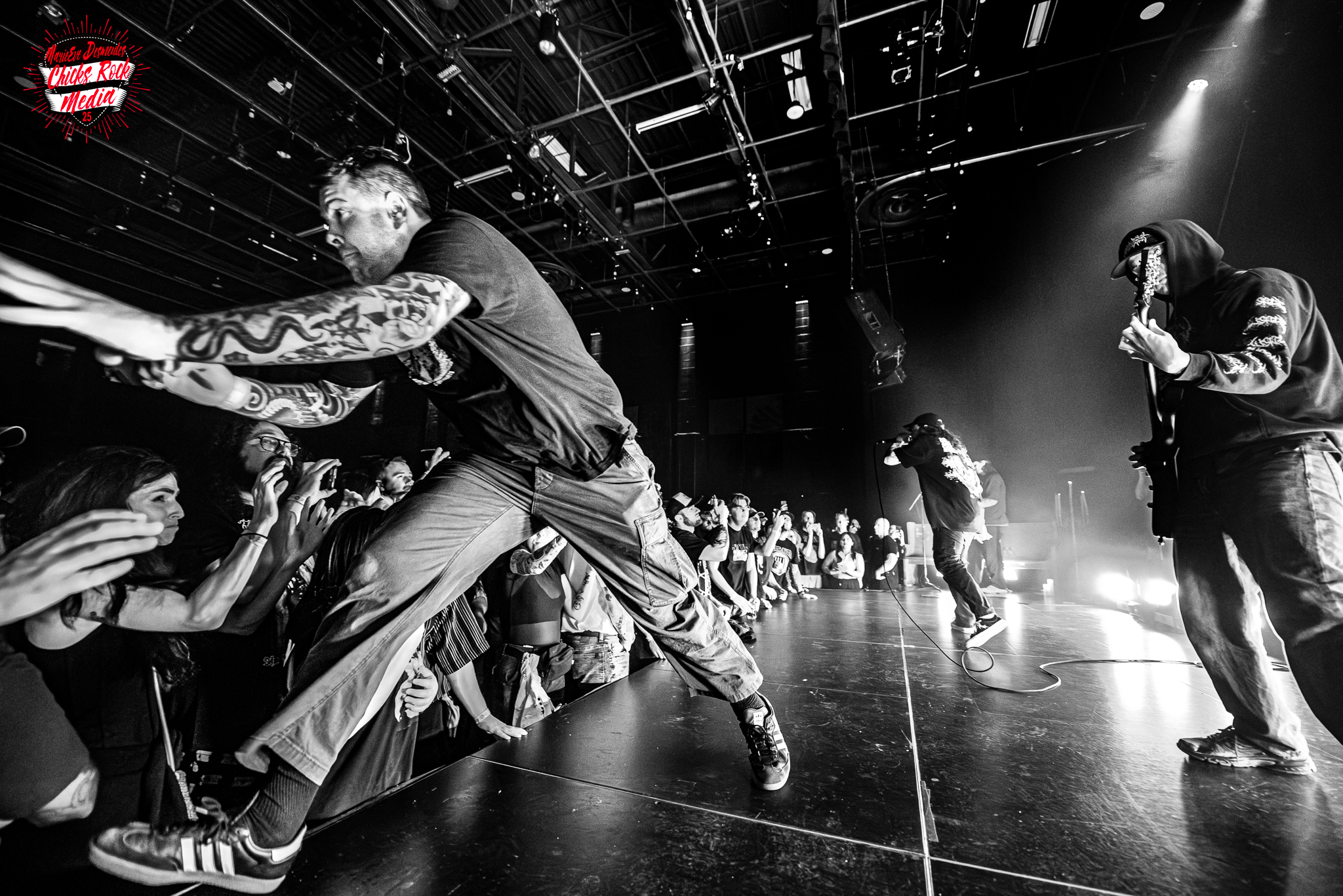 Ça saute sur le parterre, ça se rentre dedans, les coudes et les genoux fusent. Guilt a ce riff perché d’intro qui rend la salle folle. On ne peut que tracer des parallèles avec le légendaire riff de Counting Worms de KNOCKED LOOSE, qui a un effet similaire de frénésie collective. Le groupe nous explique que c’est leur première visite à Québec avant Dwell, puis on passe à On The Verge, l’autre immensément populaire single qui rivalise New Low coté férocité et effervescence. Le chanteur annonce Grayout; ça sera le dernier morceau. La fin arrive bien trop vite à mon goût, mais c’est ça, quand les chansons sont si courtes. J’en aurais pris deux fois plus long.