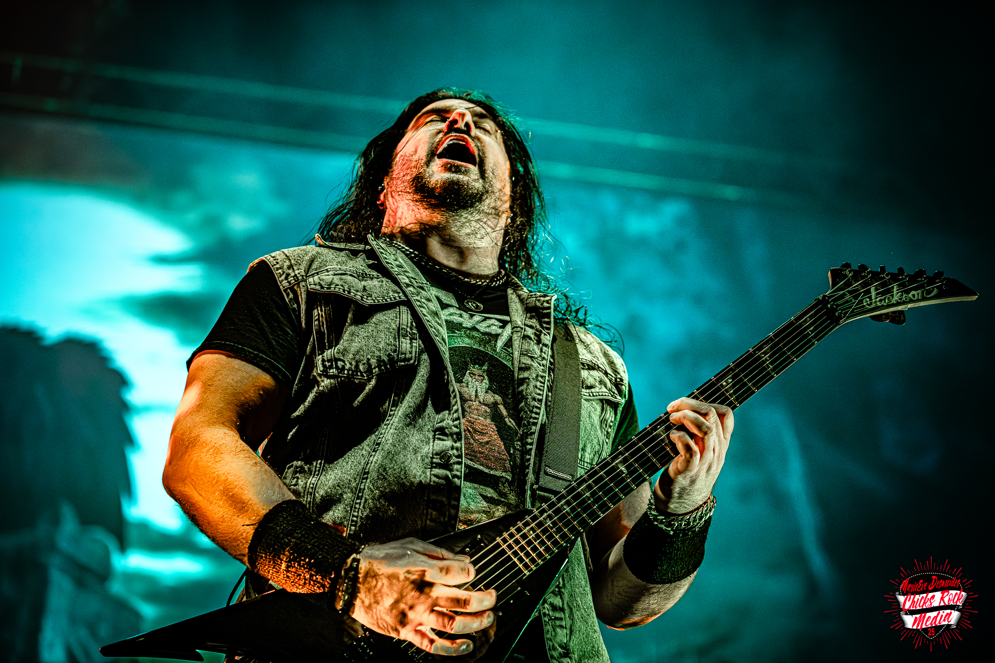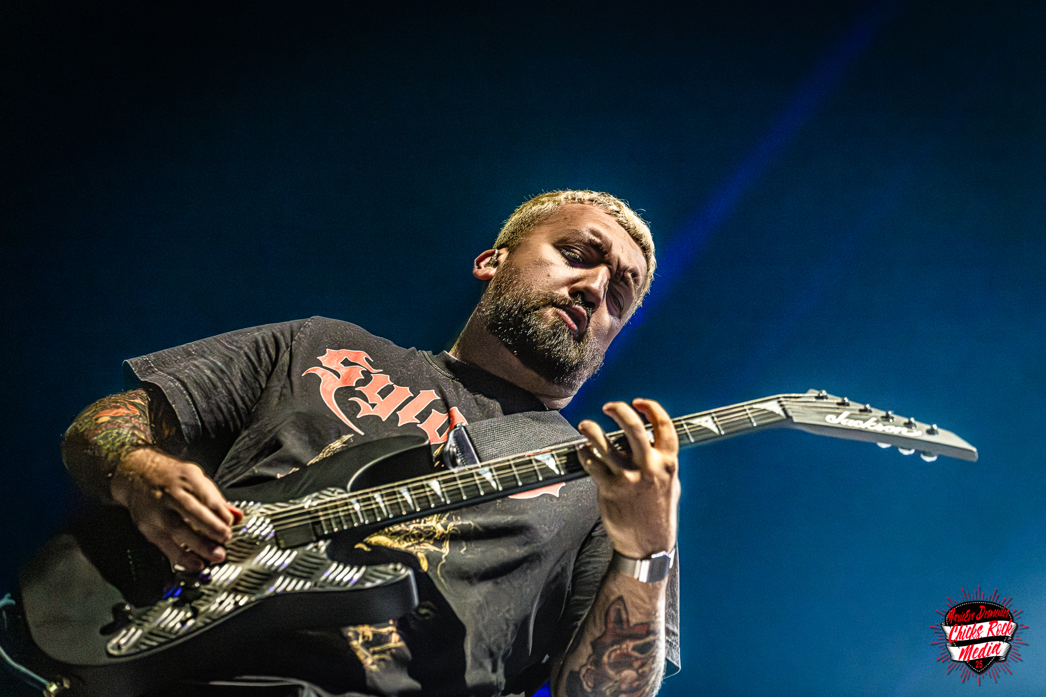 Into The Mouth Of Hell We March utilise des jets de fumée pour ses effets visuels. Avant Throes Of Perdition, Heafy nous commande de “bouger gros les amis!”. Until The World Goes Cold voit le drapeau de fond de scène changer et bouger de droite à gauche sur ses poulies. Heafy explique l’origine deBury Me With My Screams et de l’EP Struck Dead. Il nous parle ouvertement de ses problèmes de santé mentale des dernières années, et de l’endroit sombre où il était dans sa tête lorsqu’il l’a écrit. Cet EP est cathartique pour lui, et il espère qu’on va le ressentir aussi. Avec la réception que les nouveaux morceaux ont eu, je crois que c’est pari gagné.