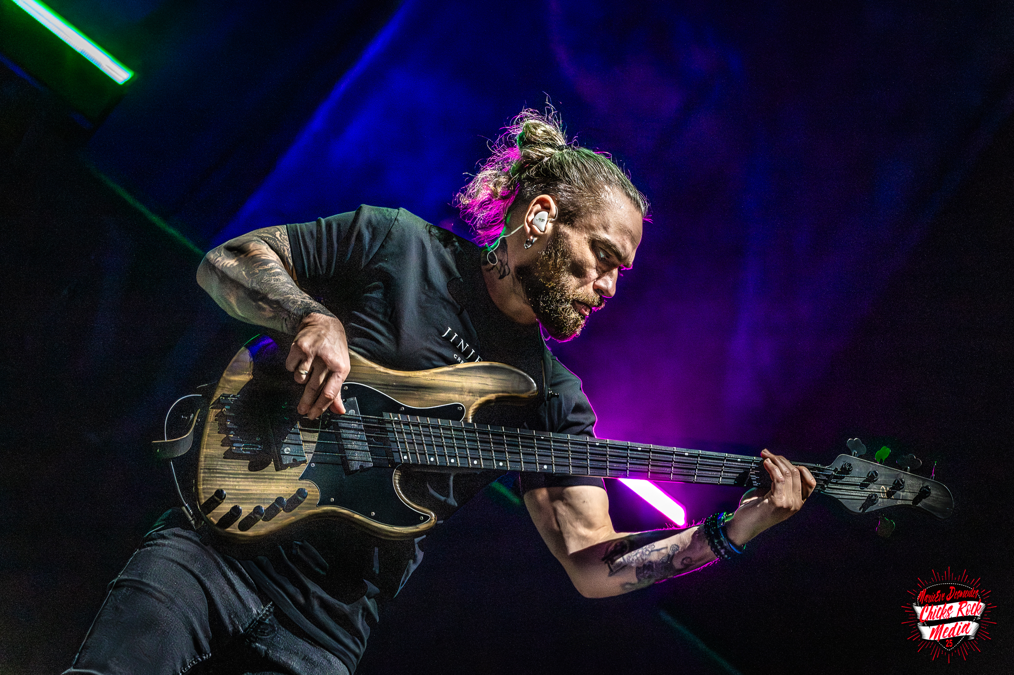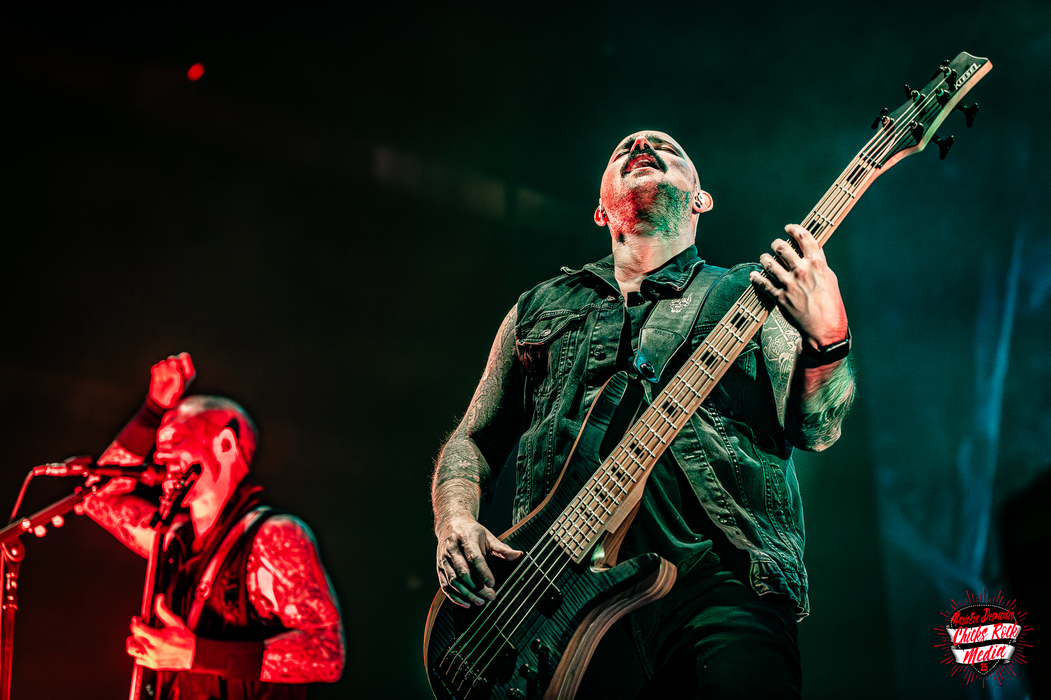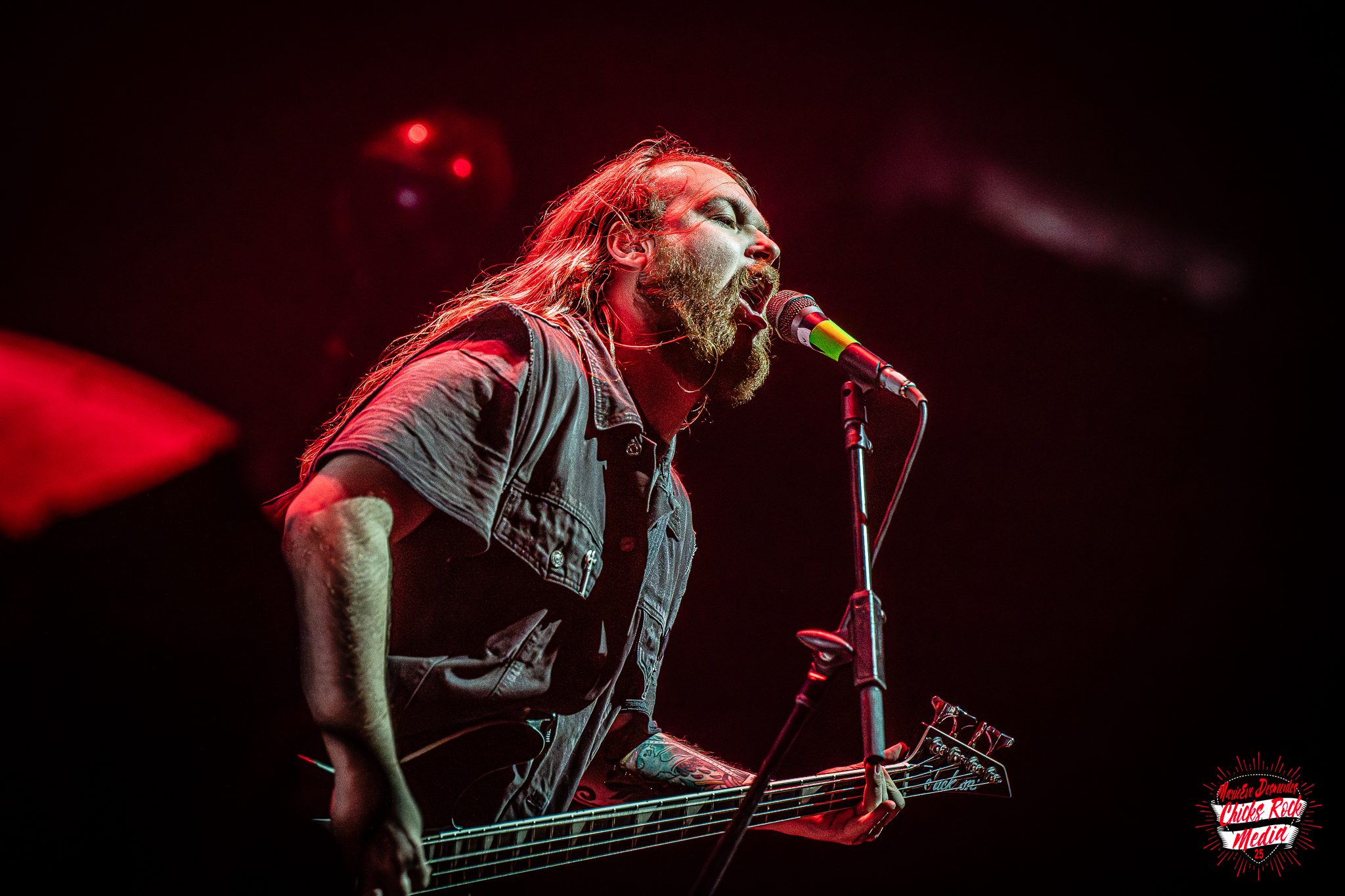 Jake Packer on backing scream vocals and bass maintained a sludgy groove all show long, dredging as if through muck with his strumming and use of reverb. That played well with the natural echo of the Videotron Center.