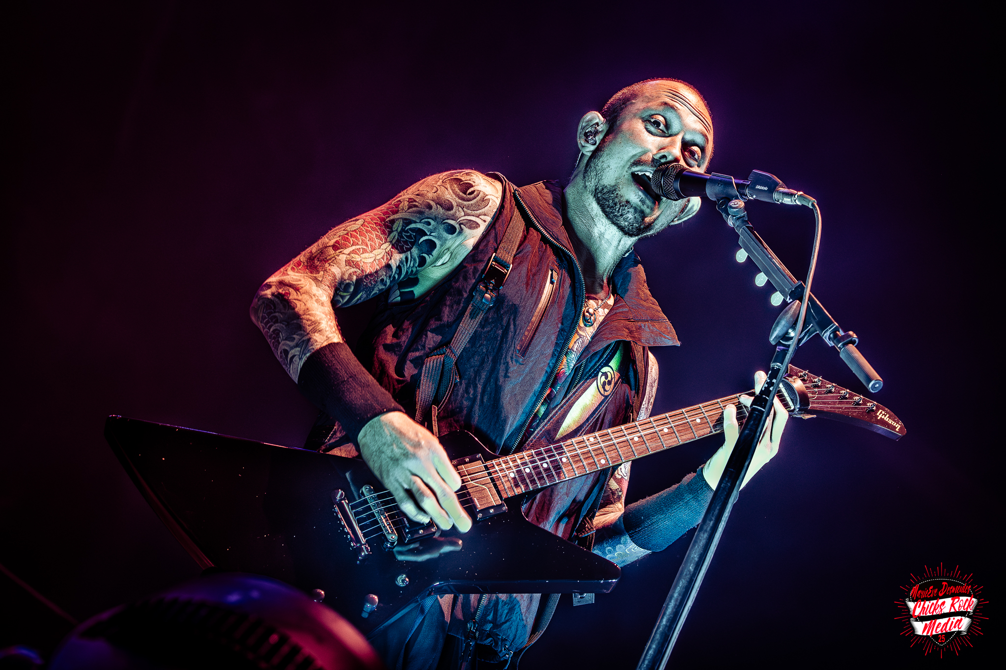 Coté chant, il fait super bien ça. Sa voix est limpide et franche, pas usée du tout, autant sur son chant clair que lorsqu’il ajoute de la distorsion. Son jeu de guitare est précis, qu’il soit dans ses “riffs” qui laissent briller son compatriote à cordes Corey Beaulieu (un cousin de descendance canado-francophone d’ailleurs), ou qu’il soit à l’avant de la scène avec un bon solo.